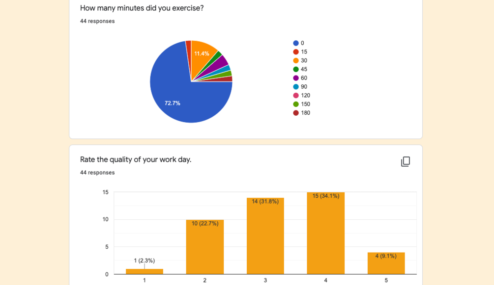 Fill it out every day - it tracks your meals, work+procrastination, how you feel day to day, exercise, etc. in a form, and then the responses are collated in a spreadsheet which generates scores and charts for different areas of your life. I've also added a journalling function which can serve as a mini diary,